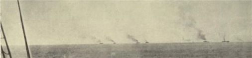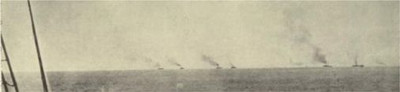 Только бронепалубные крейсера китайцев были одинаково сильны как в строе фронта, так и в кильватерной колонне. Таким образом, получается, что самые сильные китайские корабли были рассчитаны именно на таранную тактику и на строй фронта (проектировались ведь они под влиянием предыдущего эскадренного сражения броненосцев – Лиссы, где победу австрийцам принёс именно таран). В чём не прав Дин Жу Чан? Правда, критики указывают,что в этом случае надо было сильнейшие корабли поставить на концах строя. Это придало бы устойчивость китайской эскадре. Да, это справедливо, но против такого варианта тоже есть несколько соображений. Китайские броненосцы были спроектированы так, что наиболее эффективно они действовали парой (у них по разному были расположены башни ГК). Опять же, если поставить броненосцы по краям линии, то это лучше для обороны, но ведь китайский адмирал скорее всего рассчитывал активно атаковать японцев. В бою сразу стало очевидно, что все теоретические расчёты китайцев ( и их европейских советников) несостоятельны. Однако, не забывайте, что это был всего лишь ВТОРОЙ в истории бой с участием эскадры броненосных кораблей. Т.е. правильная тактика ещё не была выработана никем в мире. Дальше. Пишут, что китайский адмирал не предусмотрел каких-либо манёвров в бою и сигналов. Но! Прочитайте любую статью по тактике морского боя. Что там пишут? «Прорезывание строя противника превращает бой в свалку». При этом возможность выполнять согласованные манёвры практически теряется. Да и сигналы практически теряют смысл. А ведь таранная тактика на это и рассчитана! Достичь строя противника, врезаться в него, устроить свалку, таранить противника (или угрожать тараном). А дальше всё зависит от выучки команд кораблей. Так Дин Жу Чан действовал практически по учебнику! Ещё что? Ах, да Дин Жу Чан «не верил в способность эскадры выполнять сложные манёвры». При чём тут «верил-не верил»? Китайский командующий вполне трезво оценивал уровень подготовки своей эскадры. Ведь даже простейший строй фронта китайцы не удержали и пока они догребли до японцев, строй стал полумесяцем! Подготовка китайских моряков не была такой убогой - это вполне однозначно показали военно-морские манёвры, проведённые в мае 1894го года. Об этом же говорят индивидуальные действия китайских кораблей. Ведь «Цзи-Юань», к примеру, сумел оторваться от «летучего отряда» адмирала Цубои. И хотя, при этом он получил повреждения, но ход не снизил, да и артиллеристы действовали вполне умело. «Лай-Юань», который в бою при Ялу перенёс сильнейший пожар, также ход не потерял и сумел вернуться на базу. Артиллеристы флагманского броненосца китайцев поразили крейсер «Иосино» с дистанции почти 5 км, что для того времени было совсем не плохо. Но это индивидуальные действия, а вот совместные действия эскадры, видимо китайцами не отрабатывались. Поэтому, когда корабли поставили в одну линию, не удивительно, что произошёл разнобой. Т.е. китайский адмирал ЗНАЛ, что его эскадра совместные учения не проводила и манёвры не отрабатывала. Как при этом можно было рассчитывать на согласованность действий кораблей? Бэйянский флот на горизонте. Фото с одного из японских кораблей. Адмирал Ито также не избежал ошибок. Во-первых, в боевую линию было поставлено всё старьё, что тут же сказалось в бою. Корабли арьергард