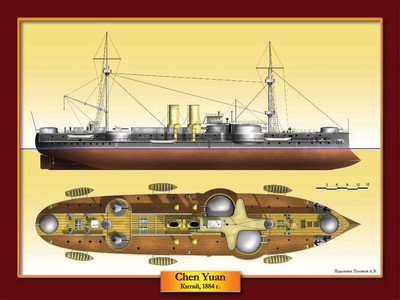 Сражение при Ялу. Единственный крупный морской бой Японо-китайской войны 1894-1895гг. Большинство статей, посвящённых этому сражению, негативно оценивают действия китайского адмирала Дин Жу Чана. А насколько это обосновано? Адмирал Дин Жучан. Вице-адмирал Ито Сукэюки. За что критикуют китайского адмирала? Первое – за то, что он выбрал строй фронта. Но ведь Дин Жу Чан имел для этого веские причины. Большинство его кораблей имели такое расположение артиллерии, что наиболее сильный огонь они могли вести в носовом секторе. Смотрим. Броненосцы «Динъ – Юань» и «Чжэнь – Юань». Башни расположены по диагонали. На борт могут стрелять 2 орудия ГК, вперёд – 4.