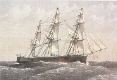 Двигатели 2 паровых машины, 8 паровых котлов; полная парусная оснастка.